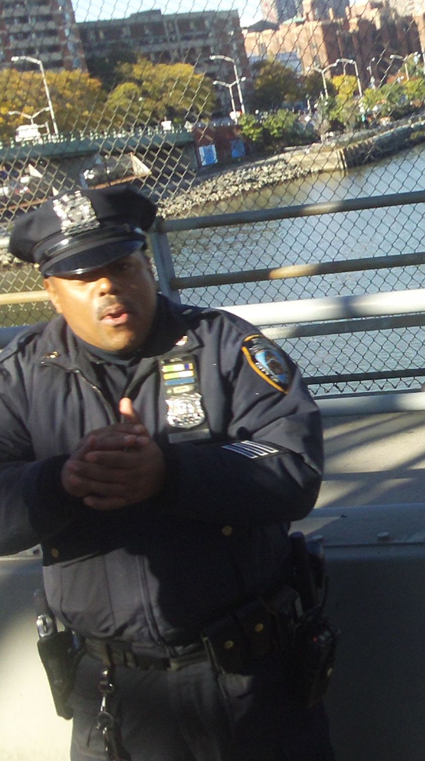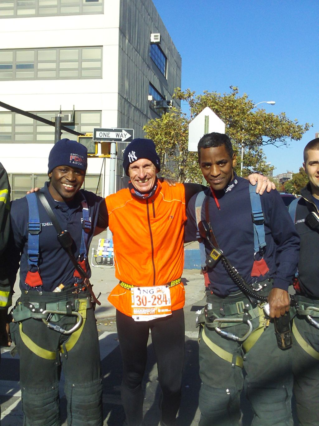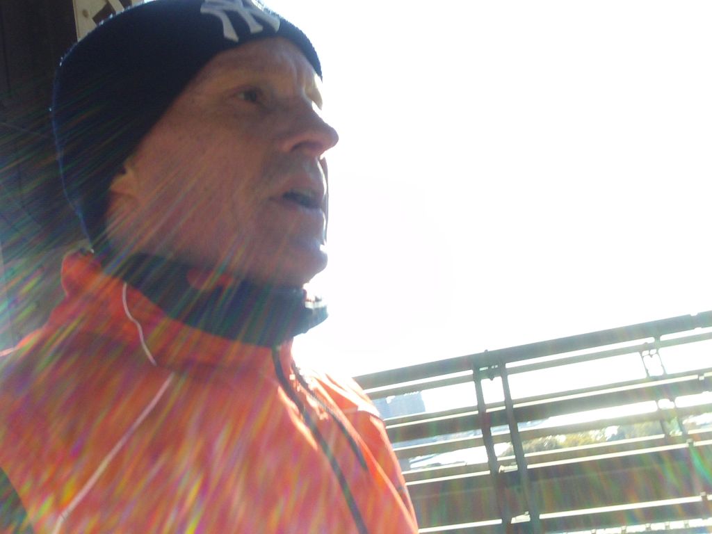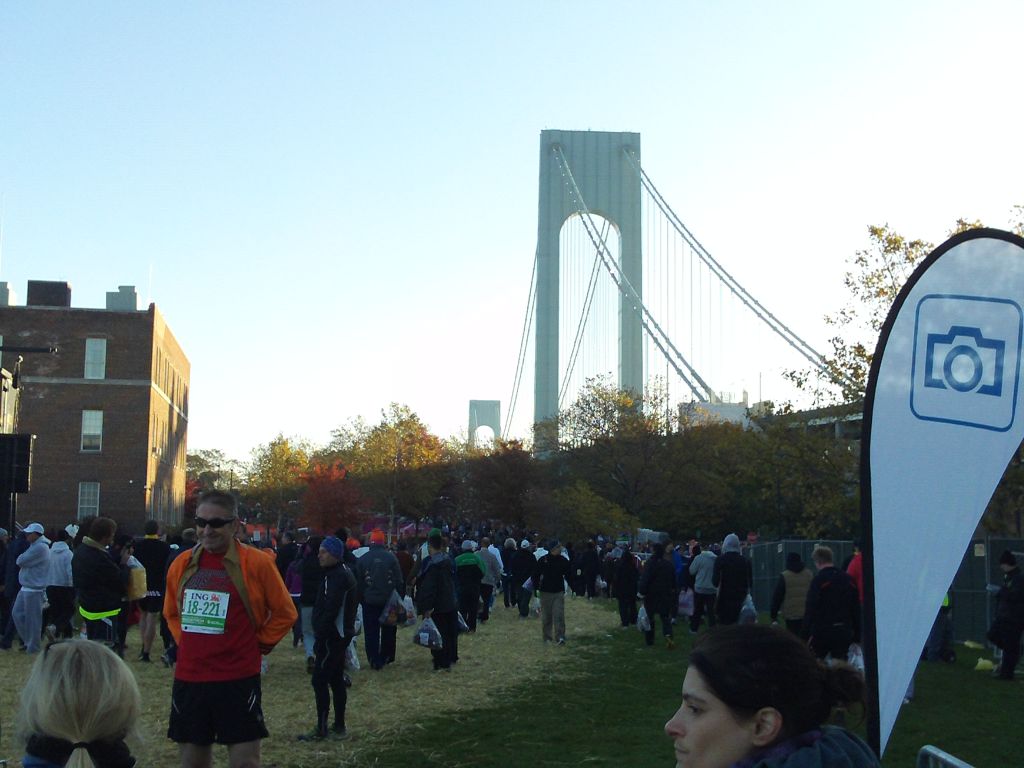 Mit Dave aus New York , 38 Jahre jung, der seinen ersten Marathon laufen wollte, am Start auf der Brücke zu stehen, schnell noch Fotos machen,