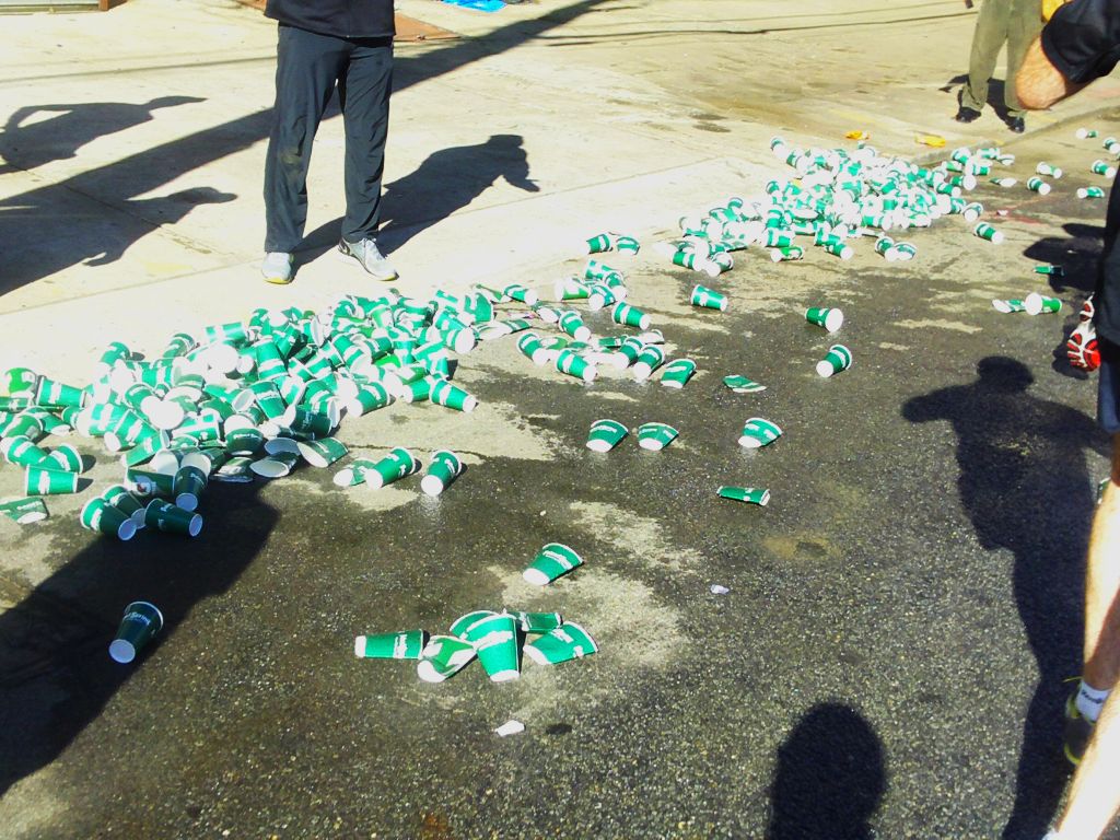 Die erste Verpflegungsstation - es gab danach jede Meile Gatorade und Wasser in ausreichender Menge