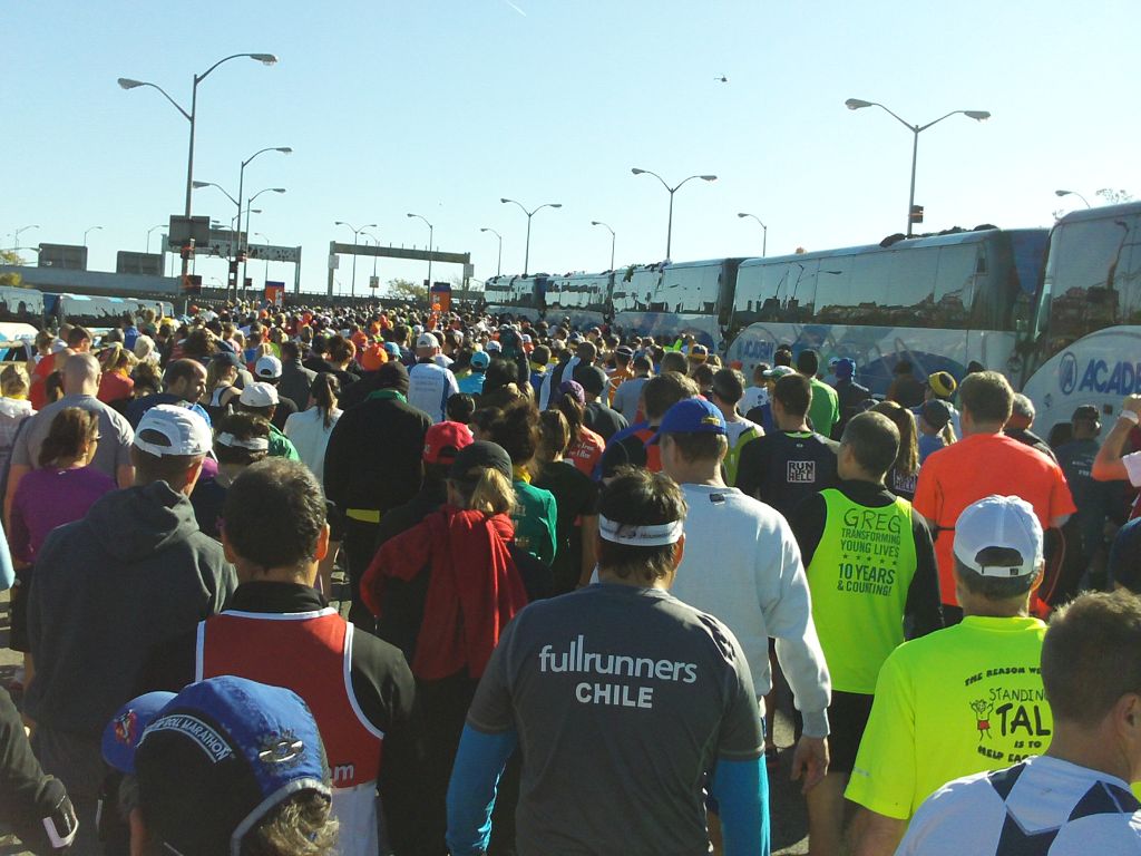 Zum Start werden alle Teilnehmer mit Bussen über die Verrazano-Narrow Bridge nach Staten Island gefahren.