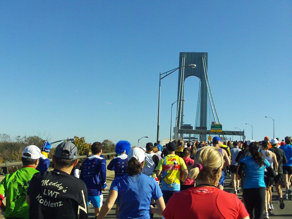 Die Brücke ist ziemlich lang, ca. 3,5 km, so das die ersten 2 Meilen das Laufes schon vorbei sind, wenn wir den Fuß auf festen New Yorker Boden setzen.